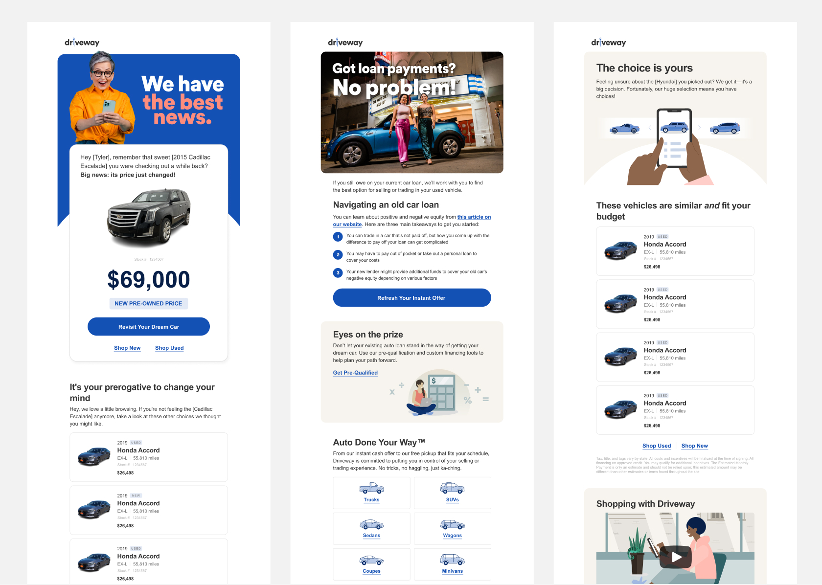 Email marketing was a core responsibility for my team. I transformed an early-stage program by building a comprehensive Figma design library and a suite of journey-based templates. Partnering with a communication strategist and copywriters, we designed email series that significantly increased open rates, click-throughs, and transactions.