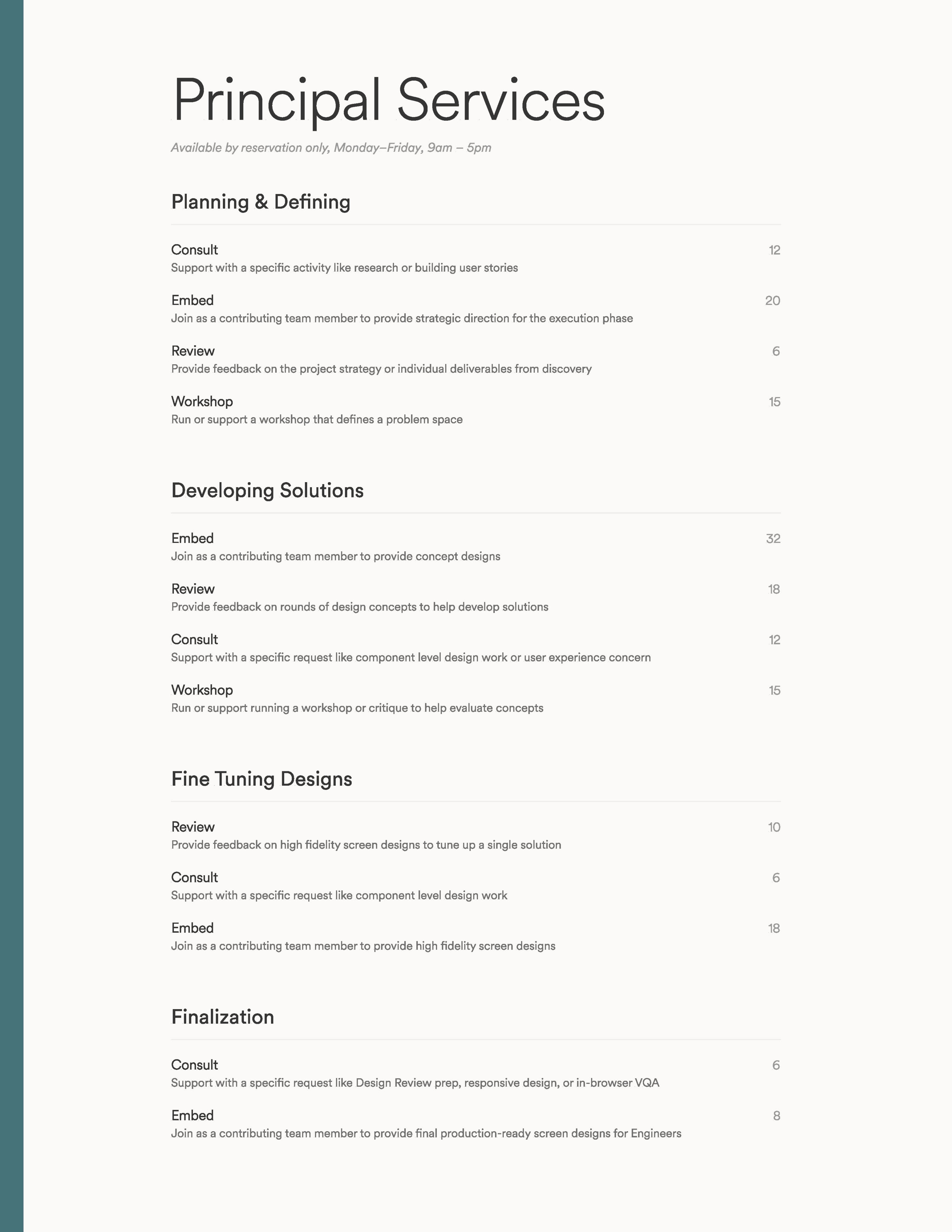 Principal Designer Service Menu