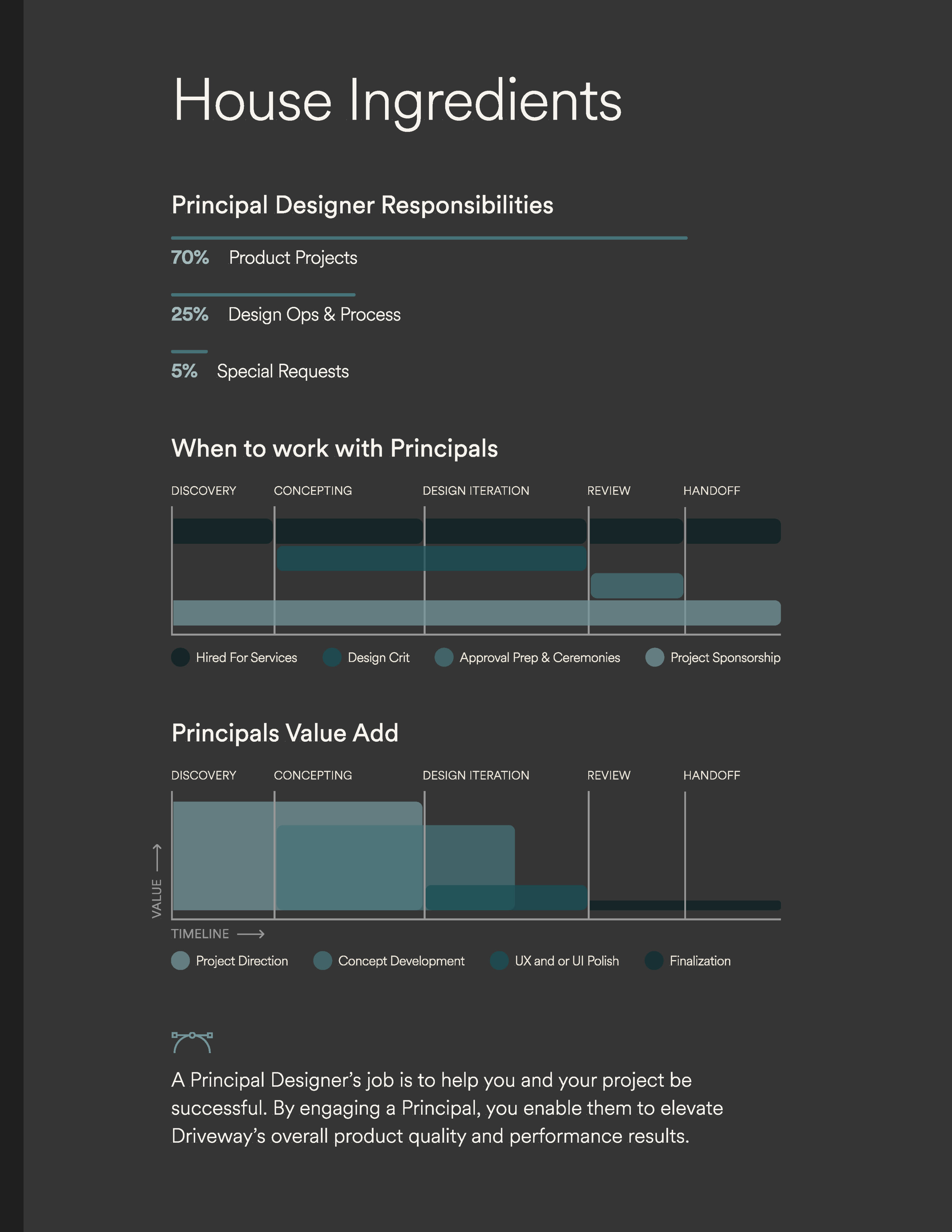The Principal Designer role was new to Driveway. I designed this menu to help designers learn how to leverage the role and take advantage of new support the business was providing their work.
