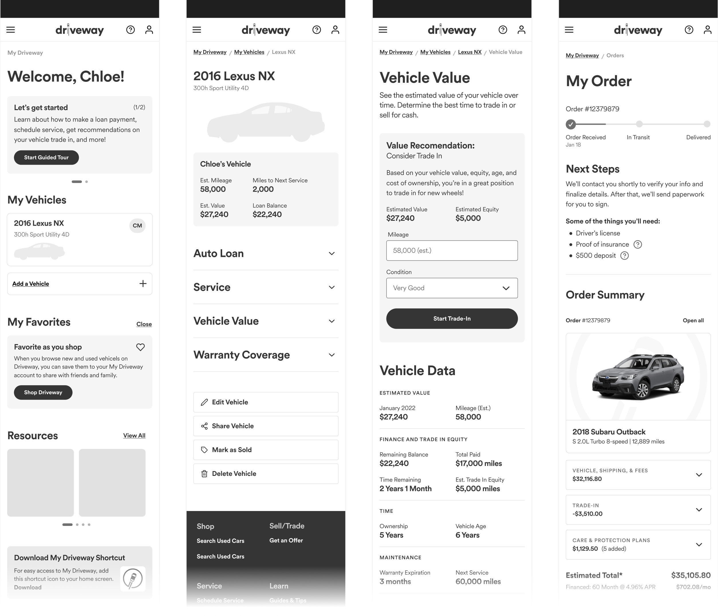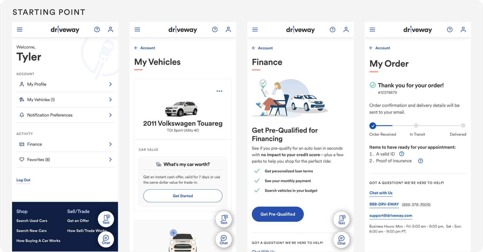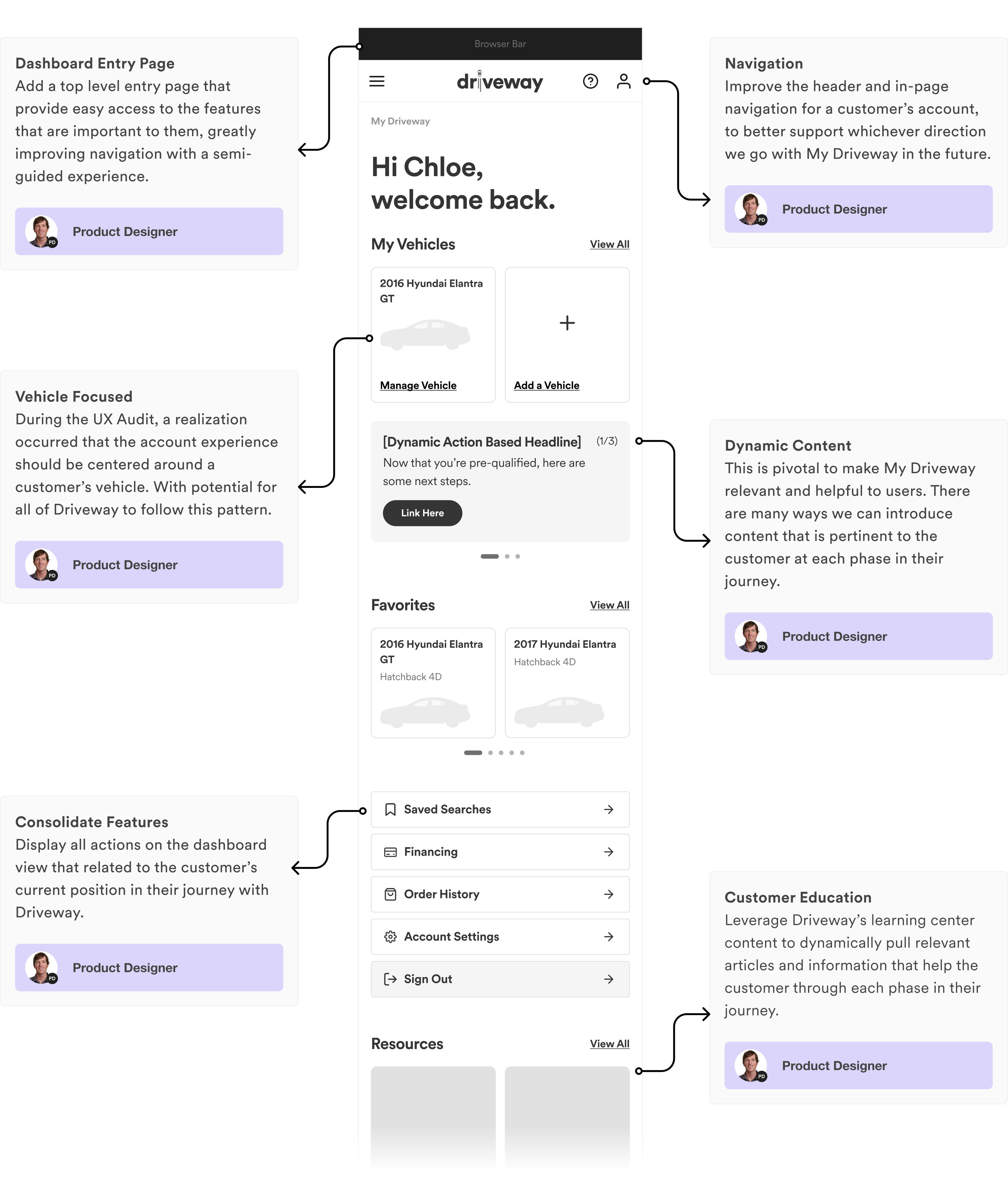 I led design and played an active designer role on an exciting project to take Driveway’s user accounts from a basic set of functionality, to a modern recommendations based dashboard that would boost engagement and customer retention. Partnering with a Senior Product Manager, we built and pitched a product vision and feature set that got approved and built.